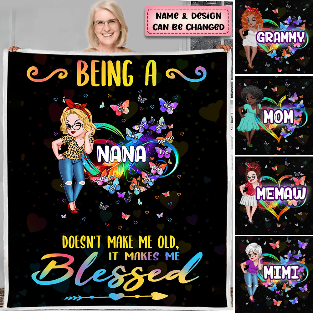 Personalized Grandma/Mom Kids Infinity Love Rainbow Heart Butterfly Blanket
