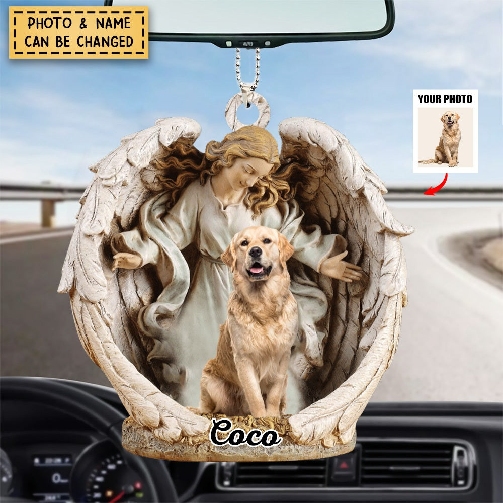 Dog Acrylic Ornament - Dog Lover Gifts - Sleeping Pet Within Angel Wings - Custom Ornament