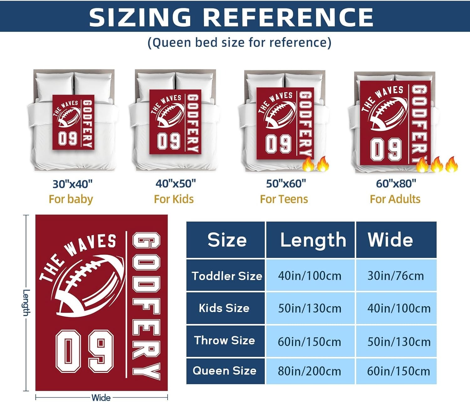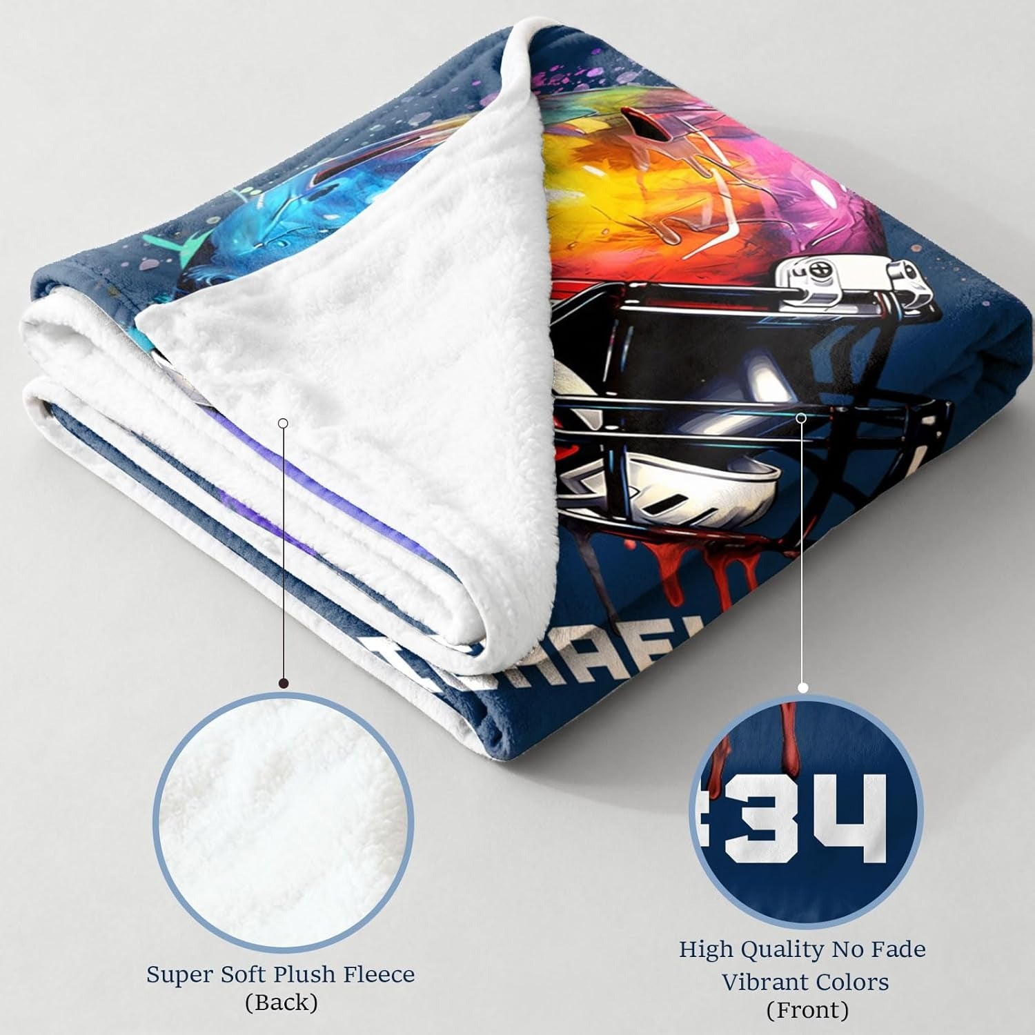 Personalized Football Blanket with Name Jersey Number, Custom Football Throw Blanket