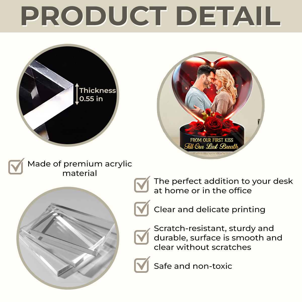 👩❤️💋👨Capture your enduring love with the personalized photo acrylic plaque, designed for couples who cherish every moment from their first kiss to their last breath. This elegant plaque features your chosen photo and custom text, creating a heartfelt keepsake that celebrates your unique bond. Crafted from high-quality acrylic, it adds a timeless, personal touch to any space. Perfect as a meaningful gift for husband and wife, it’s a beautiful reminder of your lifelong commitment and love.❤️