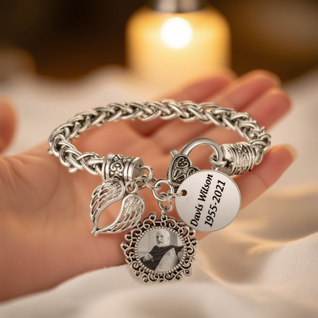 Engraved Name Personalized Memorial Antique Bracelet With Photo