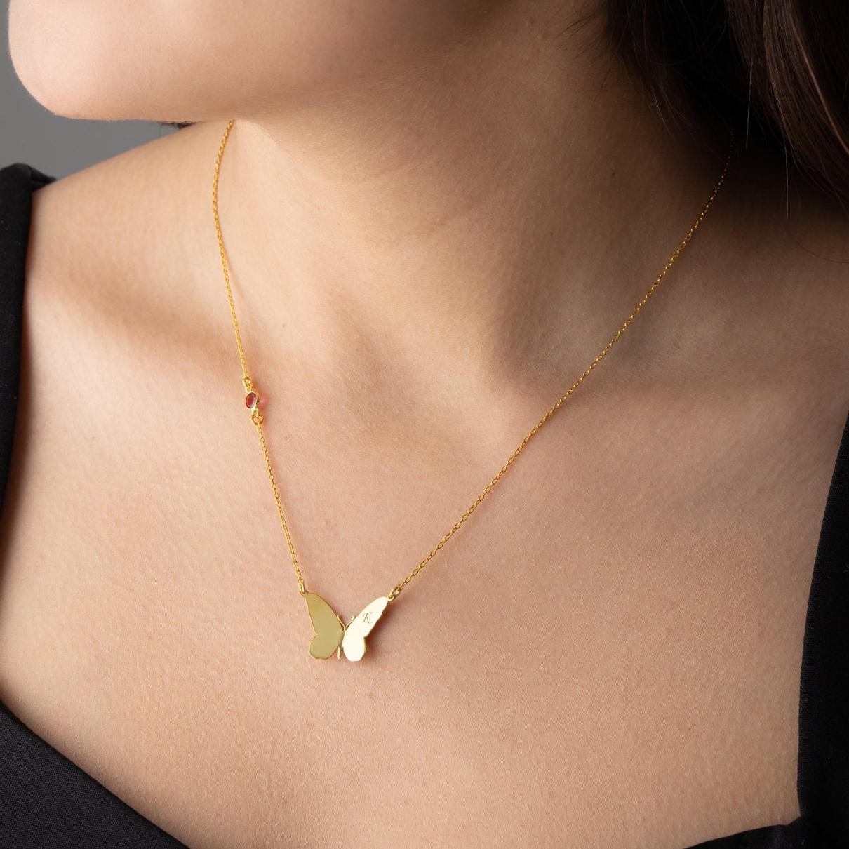 🦋 This personalized butterfly birthstone necklace, beautifully designed and infused with the unique charm of the birthstone, is the perfect gift for a loved one.