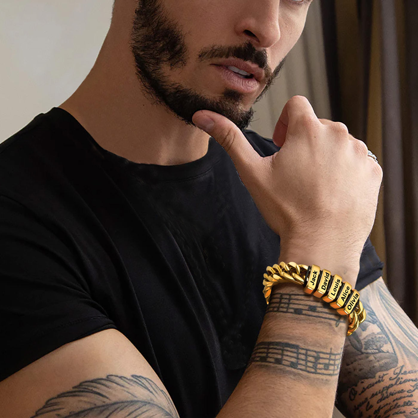 ๐จThis personalized Cuban chain name beads bracelet is a thoughtful gift for dads, sons, and husbands. Crafted with attention to detail, it combines classic Cuban chain links with customizable name beads, allowing you to create a meaningful and stylish accessory. Perfect for everyday wear or special occasions, this bracelet offers a unique way to express identity and celebrate the important men in your life. Durable and comfortable, it ensures lasting wear while enhancing any outfit with a personal touch.