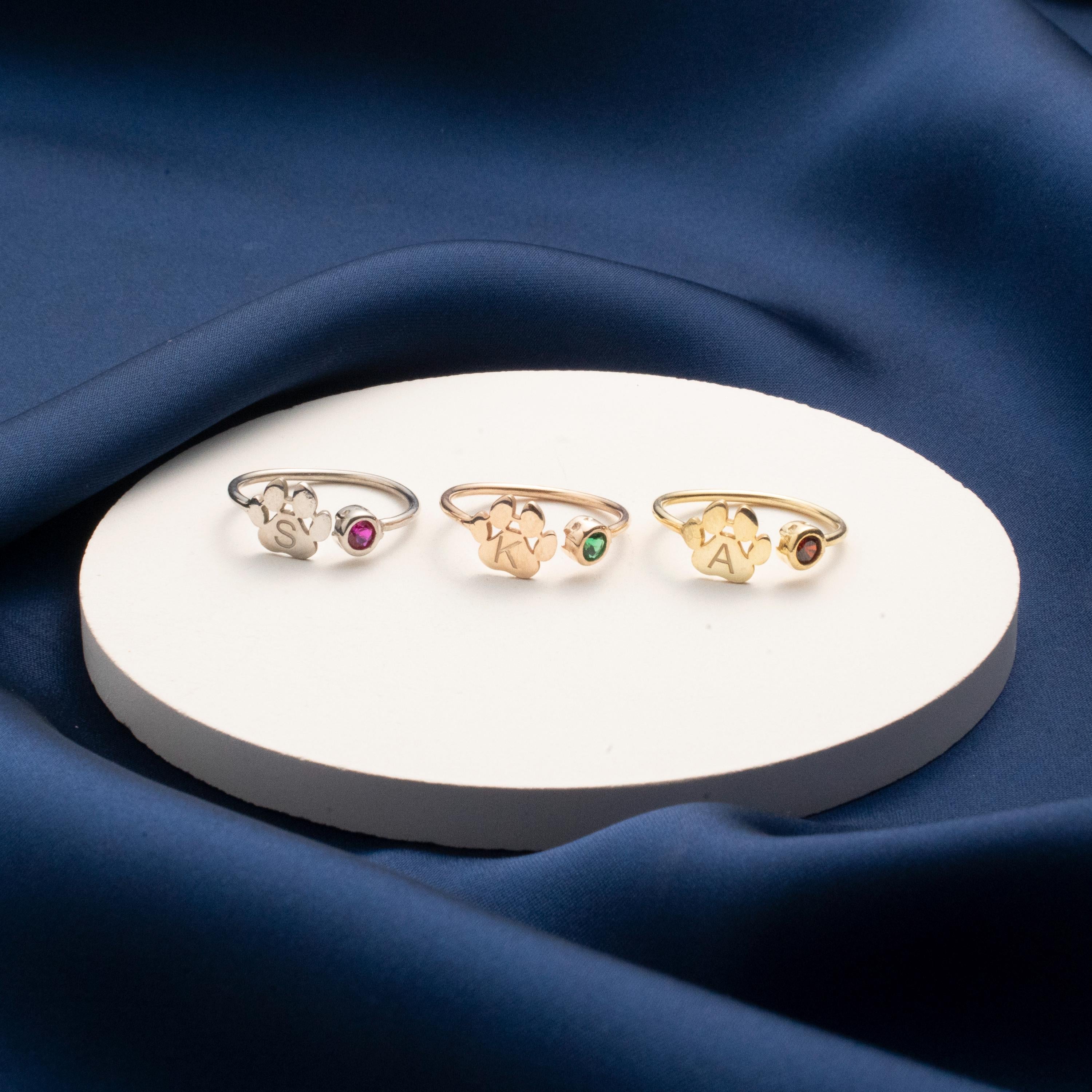 Complete with a birthstone and personalized initial, itβs a sweet way to keep your pet close, be it their birthstone or yours. Thoughtfully crafted, this ring is a daily reminder of the special bond you share.