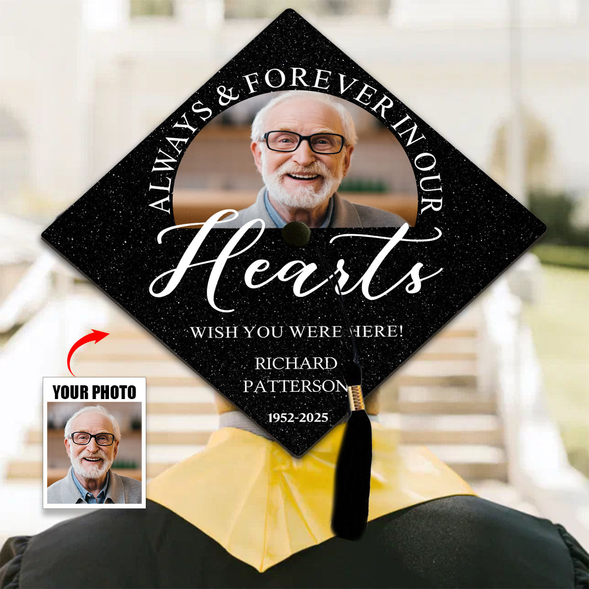 This personalized graduation cap topper and memorial graduate gift features the phrase "I Wish You Were Here" to honor loved ones who couldn't be present on this special day. With its customizable design, this cap topper serves as a heartfelt reminder of their support and love, making it a meaningful addition to your graduation celebration.🎓