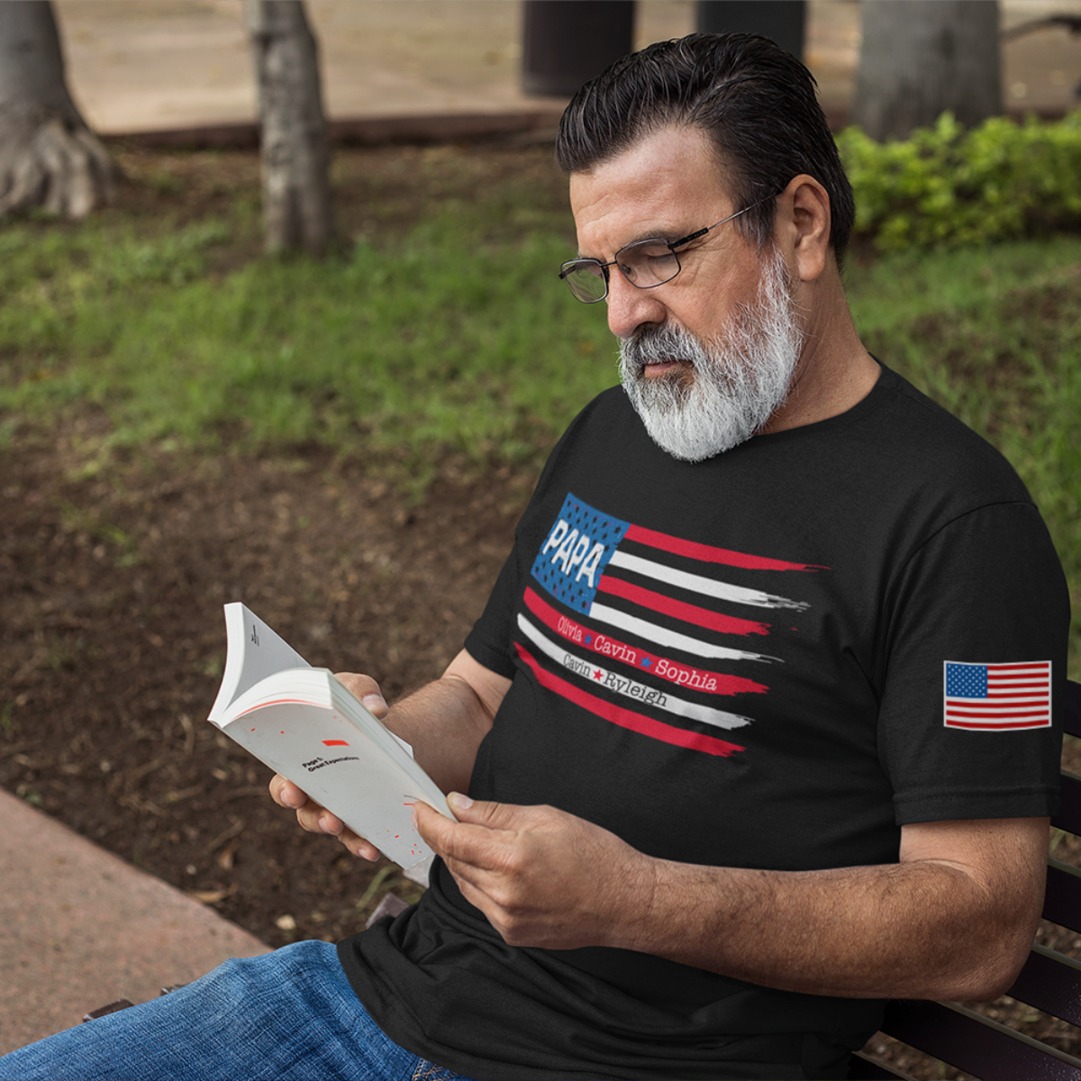Personalized Dad Grandpa Flag With Grandkids 3D T-Shirt