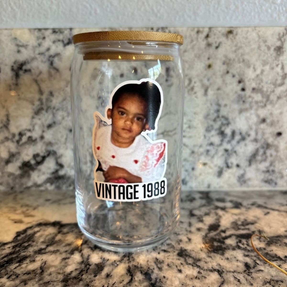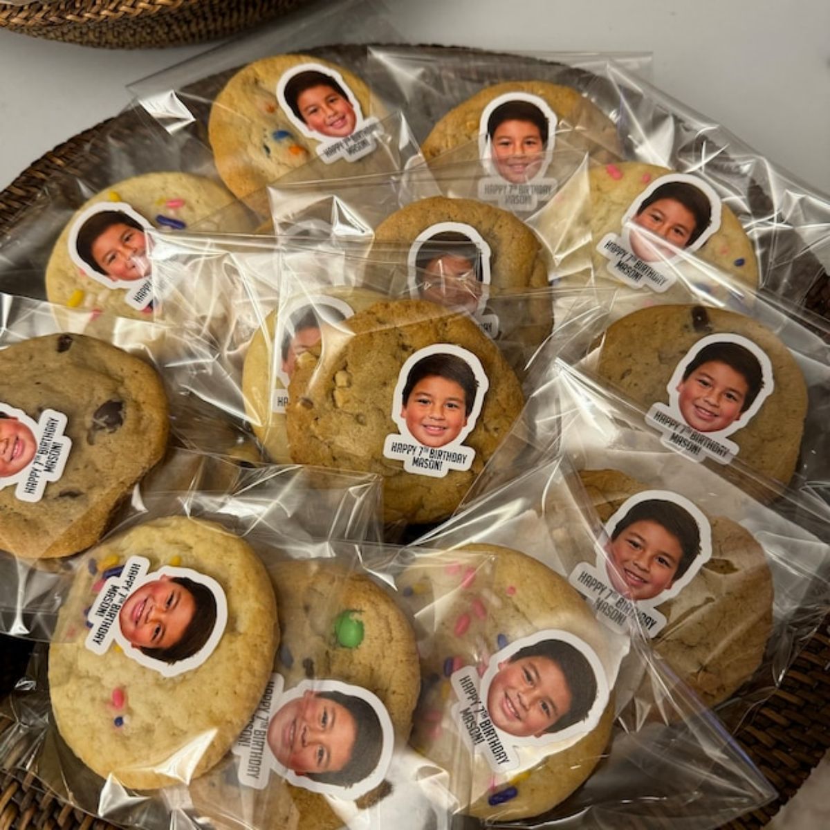 😍 Enhance your celebration with our custom photo stickers! Featuring your photo and personalized text
