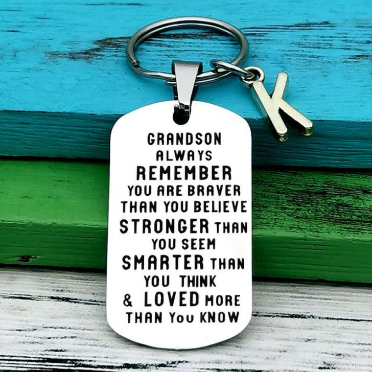 Family means putting your arms around each other and being there. Our Personalized Keychain is perfect for grandson or granddaughter to celebrate your love or show your support for them. Choose the letter of your grandson and granddaughter for a dedicated keychain with a beautiful message.