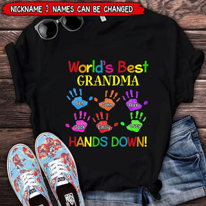 Colorful Handprint Kids World's Best Grandma Mom Hands Down Personalized T-Shirt