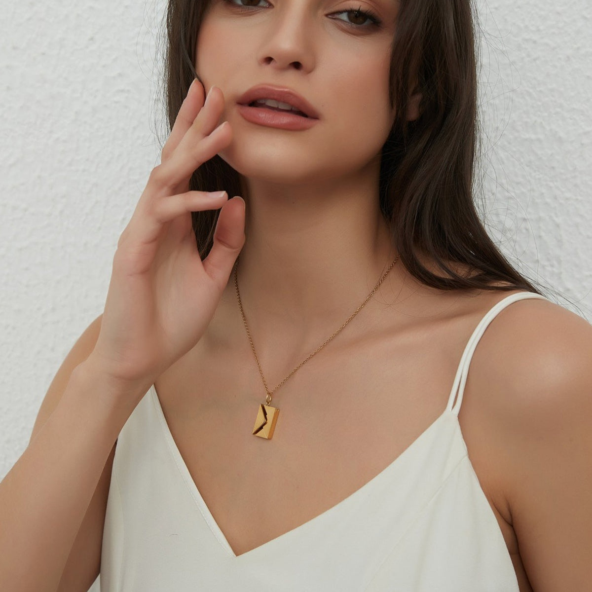 Carry your loved one with you always with our personalized memorial locket necklace. Our elegant envelope design holds a special photo and serves as a reminder that they are always with you. A sentimental and luxurious accessory for those who appreciate art, literature, and fashion.