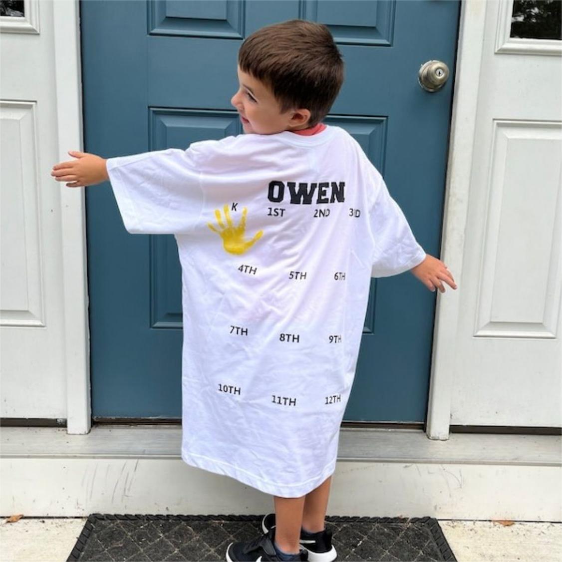 This t-shirt is perfect to commemorate your child's years through school! The back features a spot for a handprint at each grade level. This design features preschool through 12th grade. If you would like it to have different grades simply add that information to the personalization box as we can customize any design for you.