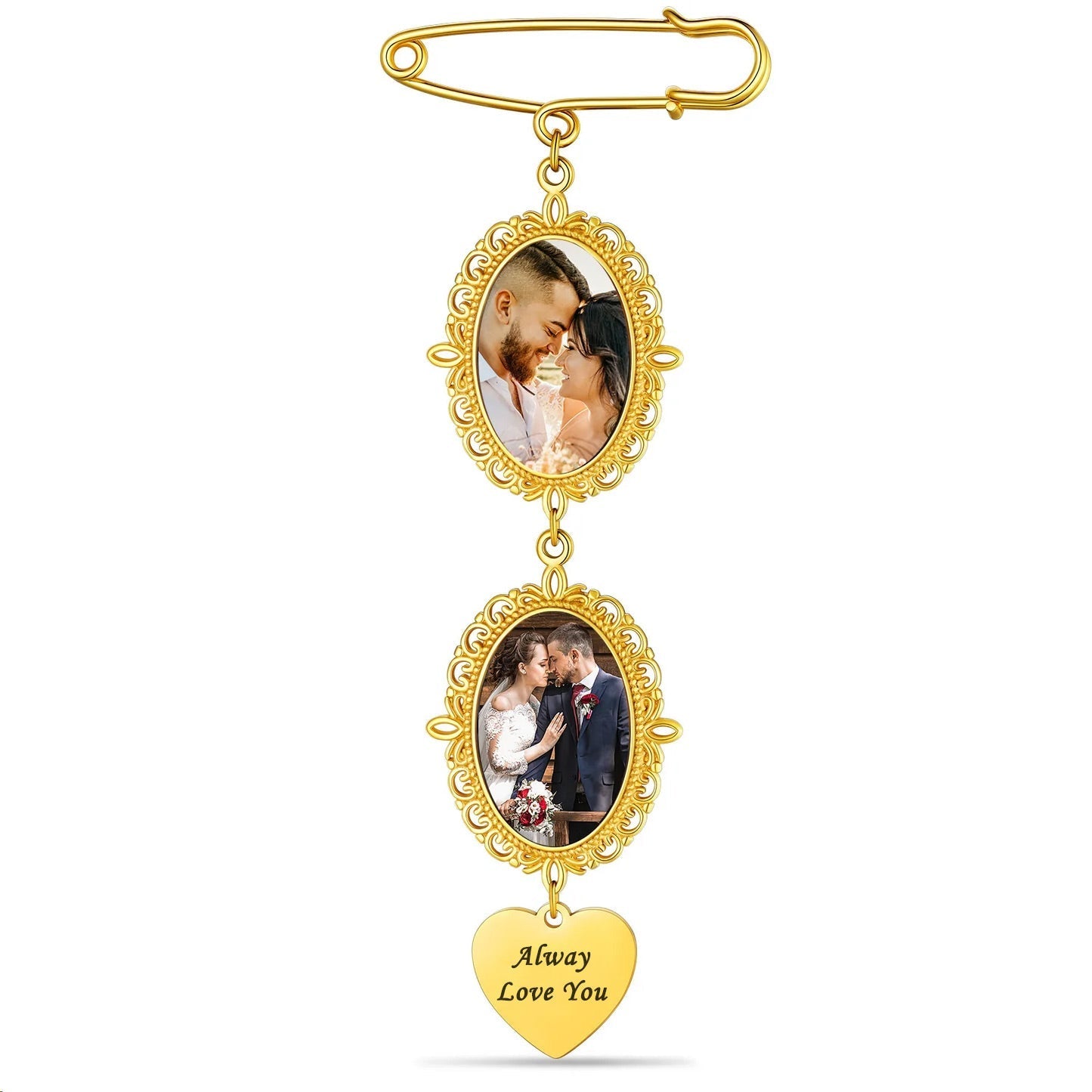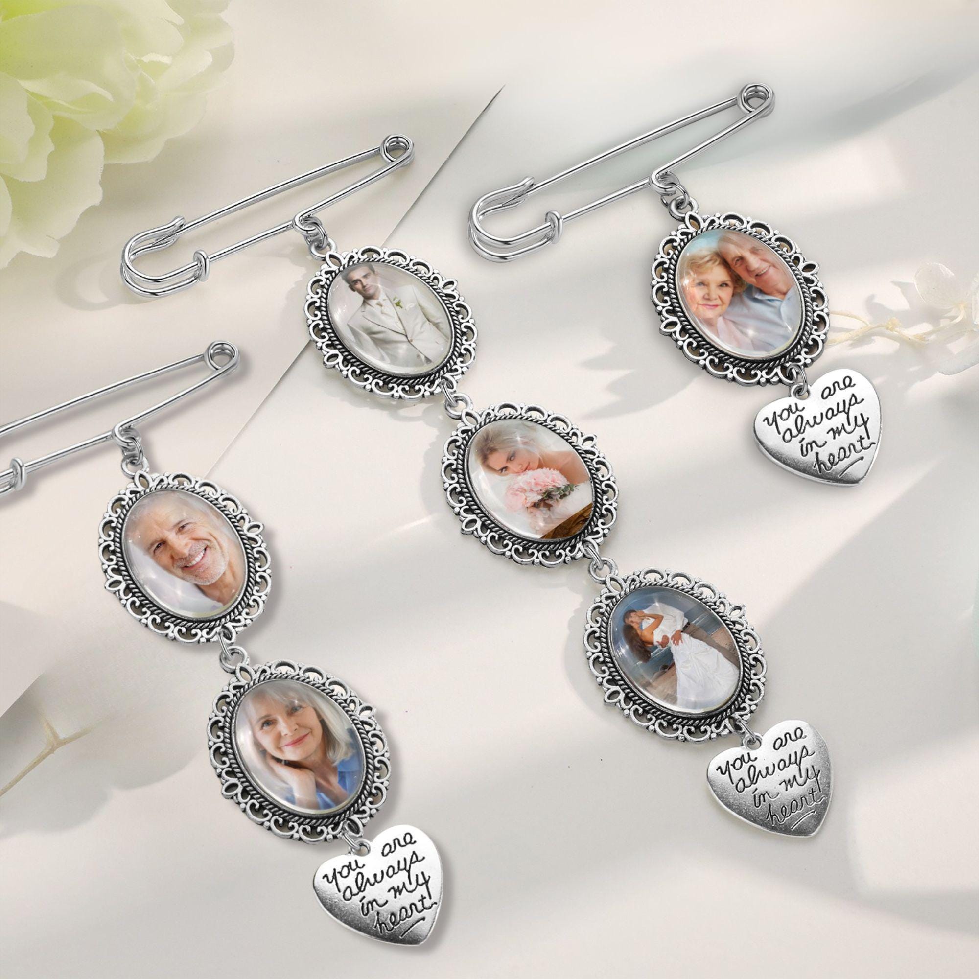 Capture your special day with Personalized Wedding Bouquet Picture Charms Brooch Pins.Add a personal touch to your bouquet and keep your loved ones close to your heart. These charming pins make a unique and heartfelt gift for the bride, bridesmaids, or mother of the bride. Preserve your memories with these beautiful brooch pins.🎁💞